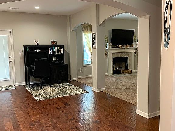 This gorgeous 4 BR/2.5 BA home is less than one year old! The open-concept kitchen features stainless steel appliances, granite countertops, subway-tile backsplash, breakfast area, a large island, and a walk in pantry. This home also features a formal dining room with coffered ceilings, a luxurious owner's suite with sitting area and a owner's bathroom that includes custom tilework in the shower, a separate soaking tub, WIC closet, and double sink vanity. This home has blinds throughout, privacy fence, beautiful hardwood, ceiling fans, sprinkler system, an extended concrete patio and a screened-in back patio and amazing covered front porch. A definite MUST SEE! Schedule your tour today! 100% USDA eligible.