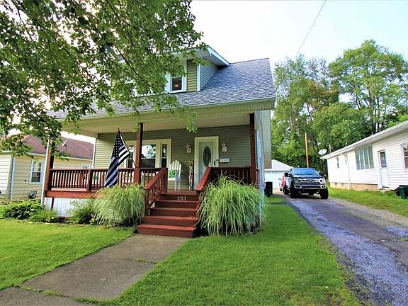 Charming 3 bedroom home located in a nice neighborhood, close to town and schools. Plenty of curb appeal, from the inviting front porch to the privately fenced in back yard. This home boasts natural woodwork throughout, first floor laundry, central air for those hot summer days, gas fireplace in the living room for cozy warmth in the winter, low maintenance vinyl sided exterior and a detached garage. The main floor flows nicely from room to room, and plenty of windows allowing natural light. Home has been updated, tastefully decorated and ready to move into. Just the perfect size and quite possibly the right choice for you. Call today!