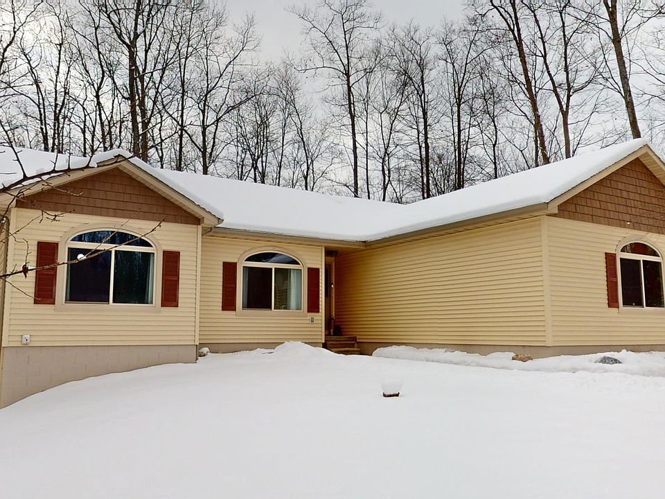 Discover your dream retreat at this stunning 1836 sq. ft. home, complete with a full finished walkout basement! Nestled on a serene wooded lot less than a mile from the crystal-clear waters of Higgins Lake, this property offers the perfect blend of tranquility and convenience. The open floor plan boasts vaulted ceilings in the living room, complemented by rich wood floors, while the kitchen features elegant tile floors and quartz countertops. Whether you're enjoying the peaceful surroundings or entertaining guests, this home is designed for both comfort and style.