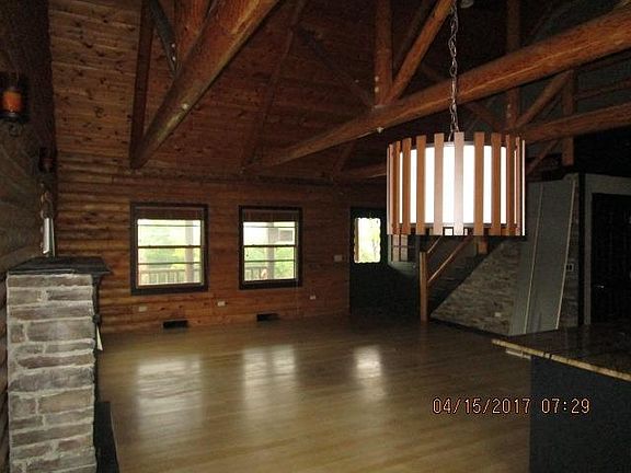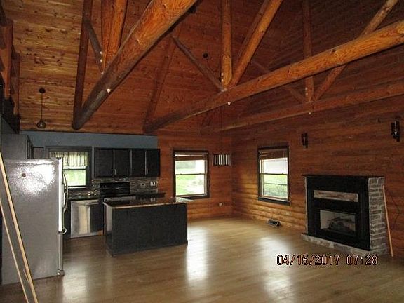 Log Home in Danville! Built approximately 1993 home features open great room design with kitchen, living room and dining area all open, large laundry/mudroom, two bedrooms on main level. Back bedroom does not have a closet and would be a wonderful room to use as home office, hobby room or put in a chifferobe or antique wardrobe to use as a bedroom. Front bedroom could be used as a master and has a large walk in closet and adjoining half bath. The finished upstairs room is counted as the third bedroom. This is a wonderful space that also lacks a closet and could be used as either a third bedroom, additional, more intimate sitting area or family/game room. The wide front porch and detached garage are ready and waiting for you.