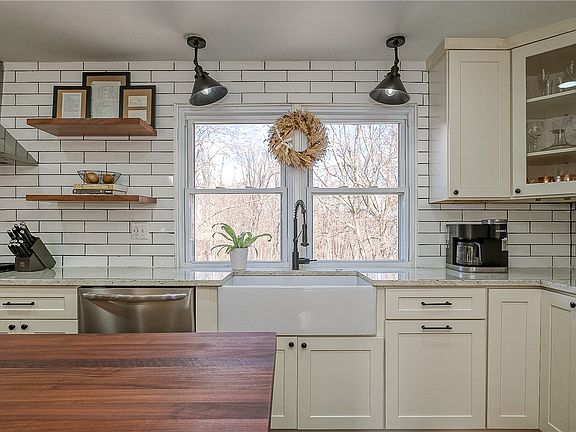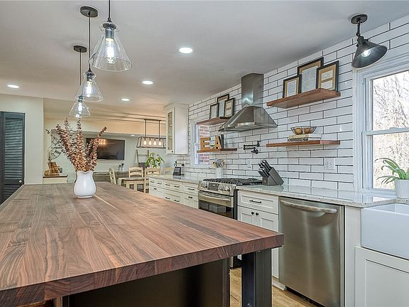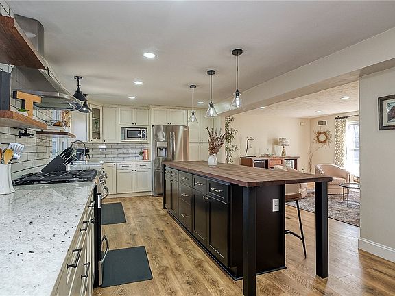 This Stunning Renovated 5 Bedroom Home is the one you have been waiting for! The main open expansive living level is Absolutely Perfect! Completely remodeled 2021 with all new flooring throughout, baseboards and gorgeous open kitchen. The brand-new kitchen features include the striking Boos Black Walnut Butcher Block Island, Granite Counter Tops, Gas Range, Pot Filler, and lovely Farmhouse Sink. In the large family room with the gas starter wood burning fireplace there is a bay window and beautiful glass doors leading out to your private deck. Just below the deck there is an additional outdoor living space that is perfect for entertaining. The main floor also includes a bedroom/office and stylishly updated half bath. Going upstairs you notice the updated rod iron staircase leading you to the additional 4 spacious bedrooms including the Master Suite, all with hardwood floors throughout. The lower level offers a great game room with direct outside access.