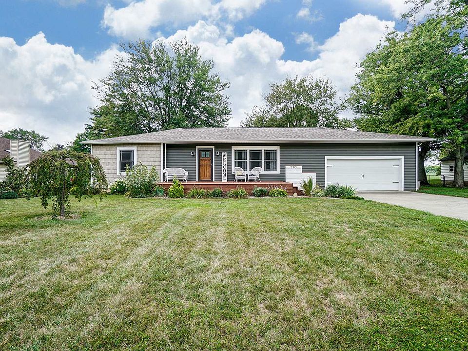 Peaceful is the word for this home. Let's take a tour of this beautifully updated 4 bedroom 2 1/2 bath house. When you pull up to your long driveway to your 2 car garage the front deck with steps and a ramp will catch your eye. Inside welcomes you with an open living room that leads away to the dining room. As you walk through do not forget to admire the tastefulness of the color scheme through out the house. The kitchen is set up to overlook the magnificent backyard that backs up to a crop field. Down the hall you will find bedrooms that are bigger than the average 1800sq foot house would have to offer. The highlight of your tour will surely be the recently updated master bathroom with a very well done walk in shower. Don't forget to look downstairs. A nicely laid out 1/2 bath and family retreat room awaits. Once you look around the corner you will gaze at a plethora of space for storage or more potential living space. To top of the tour step out on your back deck with a pergola for some shade. Enjoy a nice beverage while grilling without a tank because it has a gas hook up so you will never have to refill the tank again. What more could you ask for?
