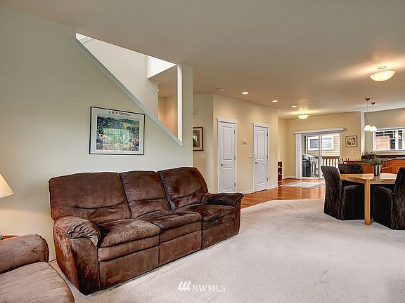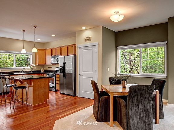 Spacious townhome in Maplewood Village. Open floor plan, 9' ceilings, hardwood floors and cozy fireplace. Modern cook's kitchen with granite counter tops, stainless steel appliances and center island. Eating area opens out to covered deck. Plenty of space with master suite upstairs, plus 2 more bedrooms and additional full bath. Utility room conveniently located upstairs. Powder room on main and bonus room on lower. Plenty of parking with full 2-car garage. Lush, natural setting.