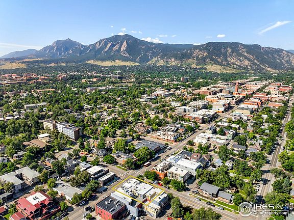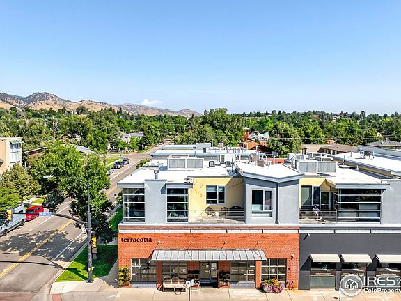 Experience exceptional urban living in this modern, loft-style residence poised on the east end of Pearl Street in Downtown Boulder. Flaunting stunning views of the Flatirons and the city, this southwest-facing retreat sits in a prime corner placement. High-end finishes adorn an open layout flowing with LV flooring and 10-foot ceilings. Natural light from floor-to-ceiling windows with tinted UV/privacy coating floods the living room grounded by a new gas fireplace. The remodeled kitchen is equipped with quartz countertops and stainless steel appliances including a Dacor gas range. A true haven awaits in the primary suite with views of the Flatirons and a remodeled bath. The versatile guest bedroom features skylights and a Murphy bed while a second full bath includes a jetted tub. Escape outdoors to a south-facing deck, perfect for grilling and soaking in the views. This secure building with an elevator offers a tall, private storage closet and unparalleled access to Boulder amenities.