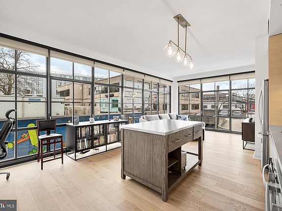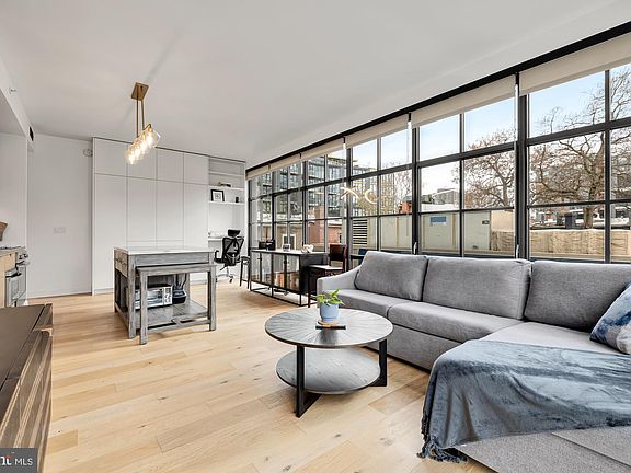 This stunning modern home is located in the highly sought-after Atlantic Plumbing Condominiums in the heart of DC's Shaw neighborhood. With one bedroom and one full bathroom, this condo offers a spacious and contemporary living space with walls of windows. The condo features expansive floor-to-ceiling windows on two exposures, facing west and south, allowing for abundant of natural light. Custom shades have been installed for privacy and light control. The open floor plan includes a gourmet kitchen with high-end appliances, including a cooktop with range hood, built-in wall oven, microwave, dishwasher, and refrigerator with an ice maker. The beautiful cabinetry features a combination of open shelving and closed cabinets, along with under cabinet lighting. A modern kitchen island provides a versatile space for additional storage, dining, or entertaining. The living room offers ample lounging and entertaining space and features a wall of windows facing west and south, equipped with high-end shades. At the opposite end of the living room is custom wall cabinetry that offers additional storage, wine storage, a dry bar, shelving and a desk. A perfect spot to work from home. The bedroom boasts a wall of windows facing west, custom designed closet system, and the adjacent full bathroom features tile flooring, a large vessel sink and a walk-in shower. A stacked washer and dryer and separate coat closet complete the interior space. Atlantic Plumbing Condos offers residents access to one of the city's best rooftops. The large party room includes a kitchenette and lounge seating, perfect for hosting gatherings. The expansive roof terrace provides breathtaking views of the Washington Monument and the National Cathedral. It also features two gas grills, a gas fire pit, and ample seating for dining, lounging, and relaxing. The top floor also houses a spacious fitness center. The building lobby features a front-desk and comfortable seating. Atlantic Plumbing is a pet friendly (no restrictions) and rental friendly (30 day minimum lease) building and also offers residents access to the swimming pool and larger fitness center at the sister building across V St NW for a nominal annual fee. For residents with bikes, private and secure bike storage is available in the lower level of the building. The location of Atlantic Plumbing is ideal, offering easy access to the city's best nightlife, restaurants, grocery stores, and Metro. Welcome home to this luxurious and well-appointed modern condo in the heart of DC's vibrant Shaw neighborhood. VA and FHA approved building. KVS Title is offering a $500 credit to buyers.