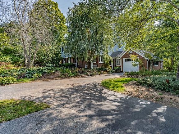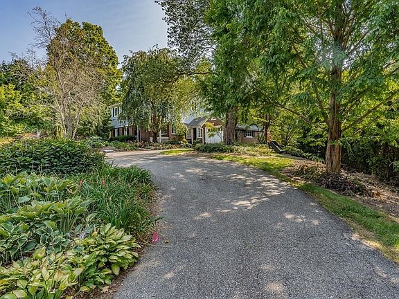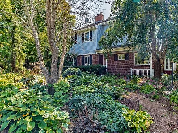 Welcome home to this unique, spacious colonial! INLAW POTENTIAL! Exterior features private, large, serene backyard w/beautiful landscaping, gardens, flowers, and perennials that is every gardeners dream! Horseshoe driveway for extra parking/convenience! Breezeway leads you to foyer and first floor with formal living room w/fireplace, 2 bedrooms with hardwood floors, office with built in shelving, hardwood floors and could be used as a 4th bedroom. 1st floor laundry could be turned back into another kitchen as there are also laundry hookups in basement! 2nd floor has amazing open floor plan with a greatroom that features cathedral ceilings, skylights, birch flooring, kitchen w/island/breakfast area, dining area, master bedroom suite, full bathroom, french doors that lead outside to multi level deck! Current owner is a woodworker and shows off beautiful custom woodwork. Finished basement w/family room, and work room/work shop that is on every carpenters wish list! High efficiency boiler.