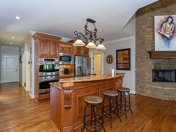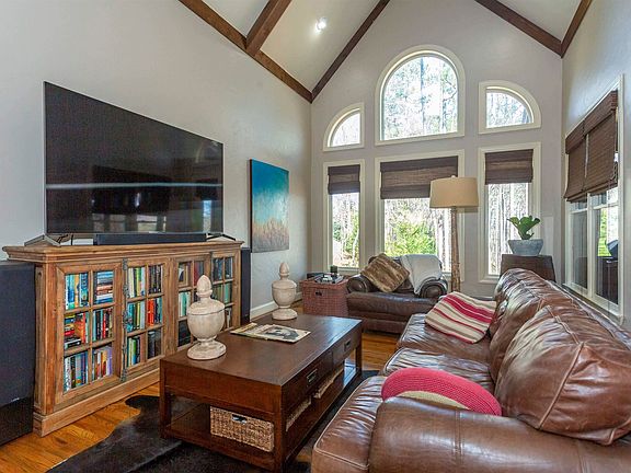Beautiful home in Highland Lakes. Castle doors lead to a bright foyer and beautiful dining room. The great room has windows looking out to the private wooded back yard. The kitchen has a great island and breakfast bar, double ovens, and ample storage. A soaring stone fireplace and beamed ceiling make the keeping room an inviting space. There is a second bedroom on the main level that could be used as an office as well. Upstairs there are three bedrooms each with their own bath. The finished basement has an exercise room, full bath, and large den as well as a mini kitchen with refrigerator. The large wooded lot has a great stone area with gas fire pit. There is also a 2 car main level garage and 2 car basement garage.