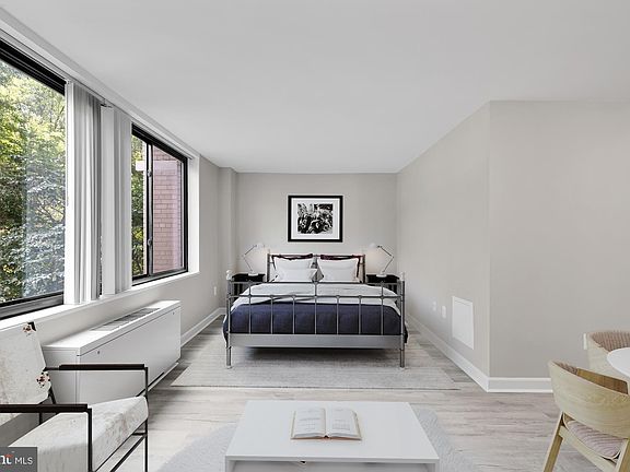 Searching for an easy-care lifestyle in a vibrant D.C. location? Don’t pass up this exciting opportunity in the bustling Foggy Bottom neighborhood! Imagine coming home to a sunlit studio condo enviably set in the Letterman House. From the beautiful, tree-lined street that fronts the building, step inside to discover a remodeled Mid-Century-inspired lobby with a communal lounge that exudes timeless charm and elegance. Your third-level residence welcomes you with an open interior bathed in natural light. A neutral palette pairs with gorgeous driftwood-toned flooring to add a touch of elegance to the comfortable layout. Large windows allow you to take in soothing tree-top views and feel the lively energy of the street below. Steps away, the all-white kitchen treats the cook to a full complement of appliances, shaker-style cabinetry, and sleek quartz countertops. A large closet is seamlessly tucked into the corner, fitted with shelving and racks to keep you organized. Before you start your day, freshen up in the full bath where a shower/tub combo awaits. As premium perks, you have access to an array of amenities designed to help you maintain your work/life balance. Share nightcaps on the roof deck surrounded by delightful vistas or take an invigorating swim in the pool. Additionally, there’s 24/7 security, daytime staffing at the front desk, extra storage and laundry facilities. With the State Department, Kennedy Center, George Washington University, the business district, the Metro, Trader Joe’s, and Whole Foods nearby, everything you need is right outside your doorstep. The condo fee includes ALL utilities! Why just read about it when you can come take a tour and see it for yourself?
