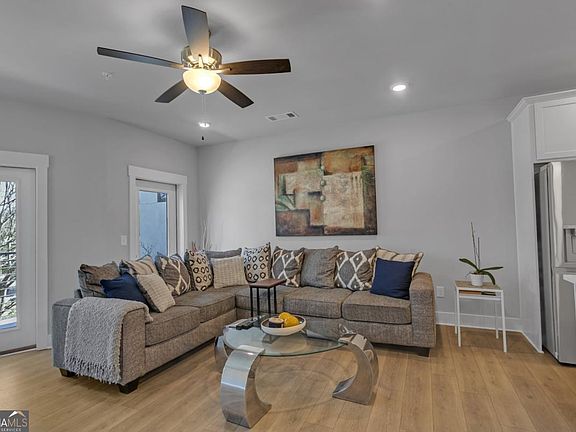Townhouse style condo living in the heart of historic Riverside. Experience the best of Atlanta's vibrant upper westside in this beautifully designed townhouse style condo located in the sought-after One Riverside West on Main community. Enjoy the energy of a rapidly growing neighborhood-without any yard work or exterior maintenance. Simply move in and enjoy! Interior highlights include interior construction with fresh paint and newer carpet throughout, durable LVT flooring in the light-filled living room and kitchen, open second-floor layout that blends living, dining, and kitchen spaces seamlessly. The sleek, modern kitchen featuring a center island, stainless appliances and quality finishes. Flexible dining room or den/office or small bedroom on the main living level, complete with a convenient half bath. The bedroom suites feature an oversized primary suite with a beautifully tiled bathroom, separate oversized shower, large walk-in closet. The huge secondary bedroom with its own large ensuite bathroom is ideal for guests, roommates, or family. The outdoor living features both a front balcony and a rear deck-perfect for morning coffee, evening relaxation, or watching the world go by. Rear-entry with a private one-car garage. Situated in the thriving Upper Westside, steps from shopping, dining, and new developments and just minutes to major commuter routes, parks, breweries, and all the excitement of intown living.