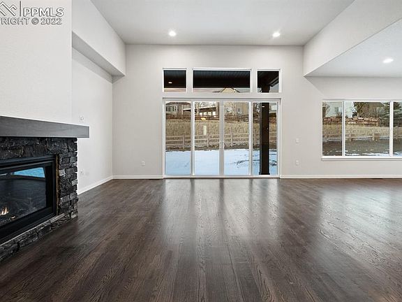 Ready Now! Copperwood Ranch Plan in Flying Horse on 9800 Sq. Foot Cul-de-Sac lot siding and backing to green space. The Main level features 8 ft doors, Real hardwood flooring, 13 ft. ceiling in great room and so much more! Walk out of the wall of doors to your rear patio. Open floor plan with gourmet kitchen, walk-in pantry w/built ins, upgraded designer cabinets, gas cook top with range hood and extended island. Great room is wide open, gas fireplace with stone and wood mantle, Main Level Master Bedroom has spa shower, double vanities and “MEGA MASTER” Closet. Main level includes a Grand Suite, with adjoining bathroom and walk-in closet. Large finished basement with huge recreation room, a lower level suite and two additional bedrooms with 3/4 hall bath. This home has everything you need or want. Finished 3 Car Oversized Garage with 8' Garage Doors. Taxes are based on land and will go up once the home is assessed. All measurements and sq. footages are approx. and may vary.