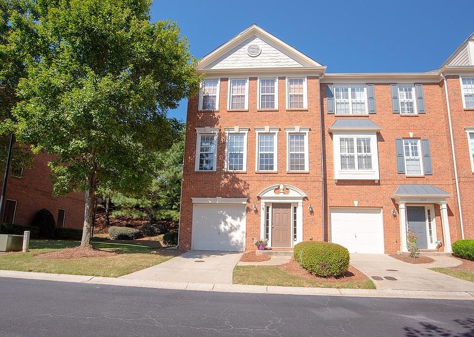 Bright and spacious end unit TH in established neighborhood mins from Historic Roswell & East Cobb. Enter foyer on the Lower Level: HW floors, 1 car garage, laundry room, half bath, & bedroom. Main Level: Open Floorplan well kept kitchen w/ SS appliances, view to living room & large windows bringing in natural light. Upper Level: Large carpeted master bedrm, ensuite bathroom w/ double vanity tub/shower combo & spacious his/her closet. Another large carpeted bedroom with tons of natural light & lg closet. Community ft Trails Pet Parks & Private Entrance to shopping ctr