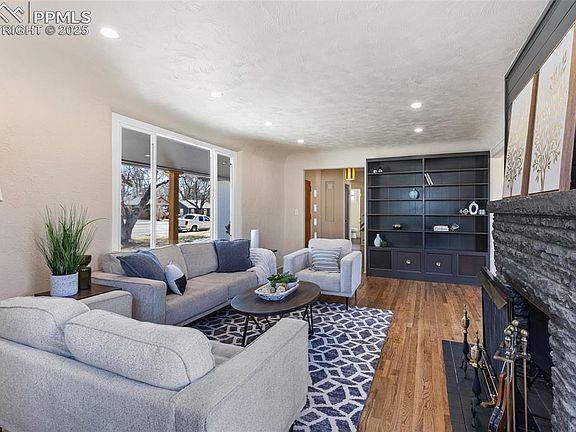 This beautifully updated ranch home, built in 1949, seamlessly blends classic charm with modern conveniences. Featuring 4 spacious bedrooms and 2 fully renovated bathrooms, this home combines timeless character with contemporary living. Step inside to discover a bright, inviting interior with freshly painted walls and refinished original hardwood floors throughout the main level. The cozy living room offers a wood-burning fireplace, ideal for gatherings or relaxing. The updated gourmet kitchen boasts new appliances, a stylish stainless vent hood, smart electric range, built-in microwave, quartz countertops, and an island with seating—perfect for both cooking and entertaining. The primary bedroom is a true sanctuary, with built-in closet storage and direct access to the newly renovated main bathroom. This spa-inspired space includes a double vanity, a walk-in shower, beautiful tile flooring, and the original 1949 bathtub for added charm. Downstairs, you'll find two spacious bedrooms with egress windows, new carpeting, and fresh paint. One bedroom features a walk-in closet for extra storage. The large family room is perfect for entertaining, with an electric fireplace and dry bar with a drink fridge. The fully renovated downstairs bathroom includes a walk-in shower, contemporary vanity, and stylish lighting. Outdoors, the fully fenced backyard offers privacy and ample space for relaxation or entertaining. Solar lights along the fencing enhance the beauty and eco-friendly atmosphere. The outdoor patio, complete with a wood-burning fireplace, is perfect for gatherings, while the new garage addition provides extra storage and a two-car attached garage. With new windows throughout and updates to the electrical and plumbing systems, this home is move-in ready and prepared for years of worry-free living. Don’t miss the opportunity to make this stunning home yours—schedule your private showing today!