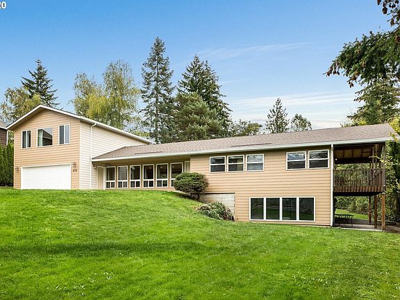Discover this spacious mid-century style home established in a park-like setting with a sprawling lawn on an oversized lot. Over $100k in improvements! Amazing craftsmanship w/ freshly painted walls, gleaming hardwood floors, updated kitchen with quartz counters, master suite w/ deck, & walls of windows overflowing w/ a surplus of natural light. HUGE daylight basement ready to be finished w/ full bath! Landscape this large lot to your taste or look into developing more housing. Zoned R-6.