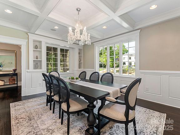 One of a kind home that has all the charm/amenities a buyer desires located in the heart of Myers Park. Once you enter into this house you are captivated by the beautiful millwork -coffered ceilings, wainscoting, custom cabinetry, hardwood floors & wide entry ways. Spacious Living Room & Dining Room w/built ins & multiple windows that provide ample sunlight. The Family Room opens to the Kitchen both overlooking the covered porch & backyard. The staircase splits when you get to the second floor which provides an open hallway. The Primary bedroom has a large walk in closet, spacious bedroom w/a beautiful view of the pool from the Balcony. You can hear the water fountain from the Primary ! Secondary bedrooms are a distance away that provides privacy for the Primary. Lower level has a playroom, small bar area & a large wine cellar. The covered terrace leads you to a private oasis. Water fountains, entertaining area encompass a circular pool! G. suite above gar.& turf byard.