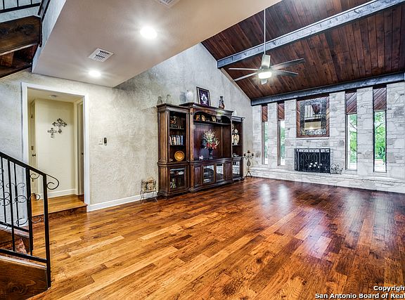 Beautiful custom built on greenbelt lot w wonderful sunset views - Swimming pool - Pretty wood work throughout from decorator touches to the floors & stone FP - GR upstairs - Master down w stone wall & loft used as a study, big updated master bath w walk in shower, soaking tub, double vanities & separate makeup vanity, door to the pool - Separate DR w view of the courtyd - Updated KT w granite, tile backsplash & gas cooking -Walk-in closets - Door from garage to side yard - Home even has a laundry chute!