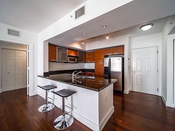 This beautiful Mediterranean-style building was constructed in 2005 & is located just steps from the bustling City Beautiful. Enjoy walks to Miracle Mile & Giralda Plaza. This 2/2 split bedroom unit features wood floors, Aran kitchen w/ granite counters, s/s appliances, washer/dryer in unit, Polo Berber in rooms & walk-in closets in bedrooms. The Master bedroom boasts a comfortable ensuite with marble shower & separate tub. Unit comes with 2 garage tandem spaces & storage locker. Balcony overlooks the interior courtyard/pool area, giving you a peaceful serene space away from city noise.This building features friendly 24/7 security, newly renovated pool, jacuzzi, event room & fitness room. Asso fee includes internet, basic cable, 24/7 security & manager on site Mon-Fri.