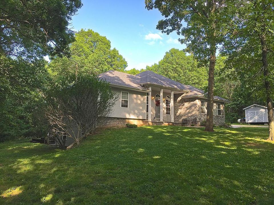 Reduced $10k! Go ahead and step out in your pajamas no one can see you. 5bed/3bath walk out basement home in the middle of 5 wooded acres awaits you. Greene County w/Rogersville schools(just up the road) and 10 minutes to SE Springfield. Every bedroom is generously sized and there are walk-in closets in every one except the fifth non conforming bedroom which has plenty of room for a closet. Huge back deck and covered front patio both steeped in nature. Custom 10 ft. walls in upstairs living and formal dining split by a two sided gas fireplace. Two pantry's,marble window seals,cedar roof decking,NEW ROOF,over sized garage,huge Jacuzzi Tub in the master(actual brand) and loads of storage. Additional wood burning fireplace in downstairs family room. Small fenced area for hobby animals.Hurry!