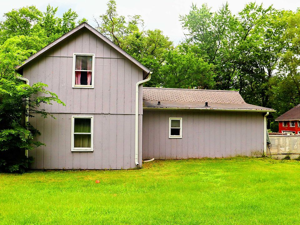 Explore this charming private property spread over an acre, adorned with mature trees and abundant outdoor space! This residence boasts three bedrooms with a complete bathroom. The main floor offers a primary bedroom with dual closets, newer hardwood floors, and fresh paint throughout the main floor. The main floor bathroom has received recent updates, featuring a walk-in shower. Upstairs, discover two spacious bedrooms and a small loft area for added versatility. Enjoy your mornings with coffee or entertain guests on the back deck. Unleash your creativity in the ample outdoor area! A storage shed at the back houses gardening tools and lawn-care supplies. Conveniently situated near highways and shopping areas. The detached garage doubles as a workshop, although the back section has some damage.