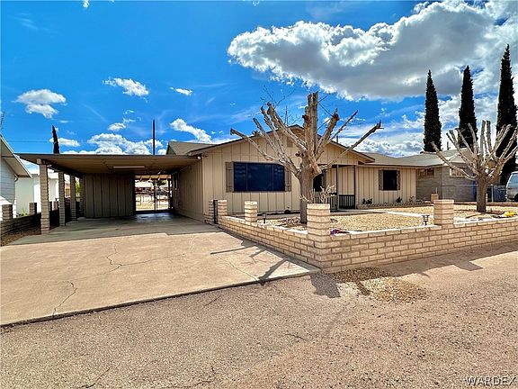 Welcome to a beautifully renovated home that brings together old-world charm and modern comfort! This house, originally built in 1977, has been completely updated from top to bottom, offering 3 bedrooms, 2 bathrooms, plus extra rooms for flexibility a bonus space off the master suite and another in the detached 2-car garage. Convenience is key, with a covered carport providing extra parking and 2 sheds that are also under cover at the end of the carport drive. Inside, you'll find stylish plank wood-style floors and cozy new carpeting in the bedrooms, fresh paint throughout with new interior and exterior doors as well! The kitchen is a standout feature, boasting brand-new quartz countertops, stainless steel appliances, and designer cabinets. Plus, there's a handy interior laundry room with a new washer and dryer nearby. The bathrooms have been transformed into spa-like havens, complete with bright white cabinets and modern tub/shower units. Beyond looks, this home has essential updates like new plumbing, electrical systems, roof, and HVAC unit for peace of mind. The exterior has been freshly painted, and all appliances are included, making it move-in ready. The landscaping is fully complete in front and back yards with mature trees, rock decor, and paved walkways. The back is fully fenced in and has a large L-shaped covered patio perfect for entertaining or simply relaxing and taking in the views of the famous Hualapai Mountains. The detached 2 car garage has a bonus room inside for storage, crafting, tools, reloading, you name it! Come experience the perfect blend of classic charm and contemporary living.
