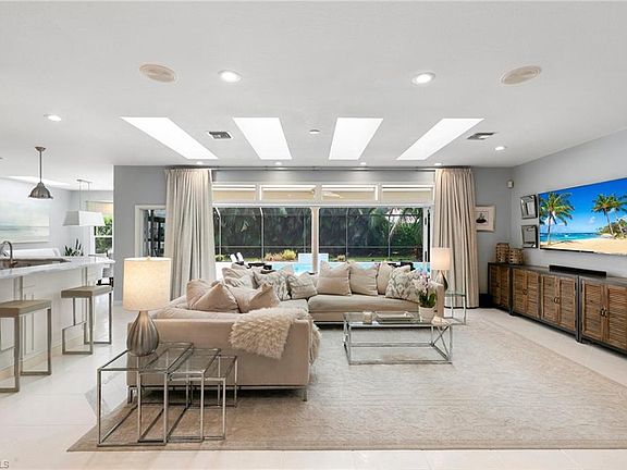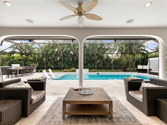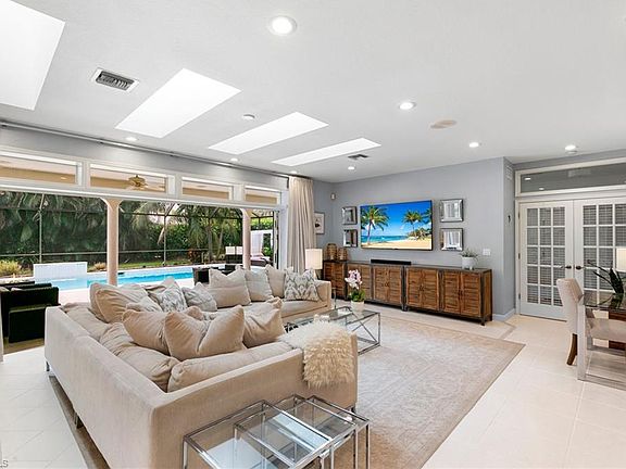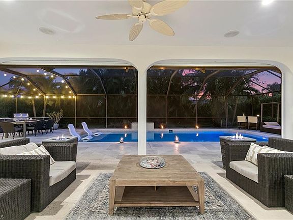 This coastal bright & airy home is the epitome of North Naples living. Thoughtfully remodeled with high-end upgrades, this gorgeous move-in ready 3 bedroom / 2 bath home has added all the things you’ve been searching for. Second living room space can be used as a den / converted to 4th bedroom. As you pull up to the home, an expansive circular driveway, greets you providing ample parking for guests & the entire family. There is also a 2.5 car garage. This home is light & bright thanks to the skylights which were installed in 2019 with the NEW flat tile roof. Hurricane Impact windows were also installed in the last few years with storm shutters for the lanai and front door give you peace of mind, while the Ideal location, Close to the back gate of Imperial right off Livingston Road, which will save you SO much time! Enjoy the quiet, dead end street with lots of privacy on .31 acres! The tranquil, private back yard is surrounded with lush landscaping, fruit trees (Avocado, cherry and room for more!) and a stone pad for a garden or relaxing fire pit area. All irrigation is on a well. A wide wall of sliders push back into the walls to create a seamless transition to indoor / outdoor living. This is the PERFECT space for entertaining. The modern oversized pool has a sun shelf, with chairs & waterfall creating tranquility and fun where all the kids can gather. A massive deck with a big space under roof, outdoor kitchen with quartzite counter tops, built in grill, storage, outdoor shower & pool bath, make for Florida days by the pool a dream. This home doesn’t make anything a chore. Do you love to cook? Then you’ll love this creamy white kitchen with custom cabinetry, high end Jenn Air appliances (Induction & Convection oven, microwave can also be another convection oven, even has a setting to push and let it cook itself) Plenty of counter space for cooking with beautiful quartzite counters and bar seating for guests to keep you company while you’re preparing the meal. There’s even a built in pantry around the corner in the hall and then a HUGE Walk in pantry with more storage and a coffee bar / wine cooler. How about laundry? This large laundry room has a counter top for folding and ample storage to keep things tidy and less likely to make you dread it. Additional features - custom wine area in den, central vac, marble slabs in the renovated master bath. AC & ductwork (2021), water heater (2023), new irrigation pump (2024), plantation shutters, wine fridge, custom drapes, Flood Zone X means NO flood insurance required. Evac. Zone C! Low HOA fees! Only $631 /quarter which includes cable & internet. A rated school district (Veterans Memorial Elementary, North Naples MS & NEW Aubrey Rogers HS), Also close to many private schools - Royal Palm Academy, First Baptist Academy, Mason Classical Academy, Community School. With dual access to the gates off Livingston Road & 41, this community is in a supreme location.
