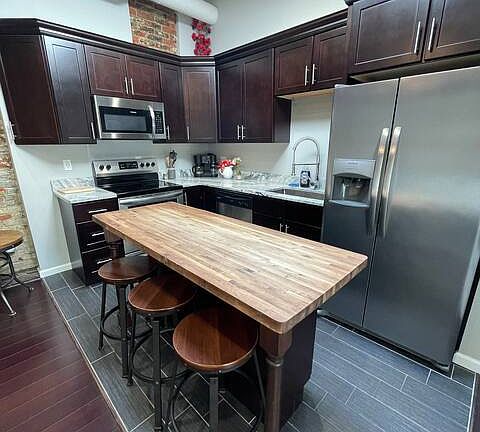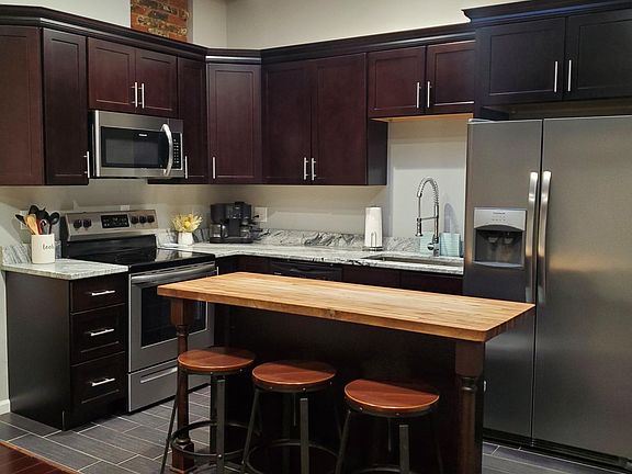 - Exterior features: Butcher Block Kitchen Island, Electricity not included in rent, Exposed Brick, Gas not included in rent, Granite Countertops, Heating system: Forced Air, Historic, Sewage not included in rent, Stainless Steel Appliances, Water not included in rent