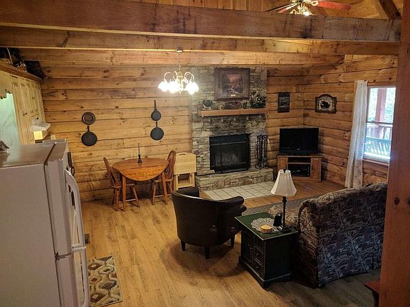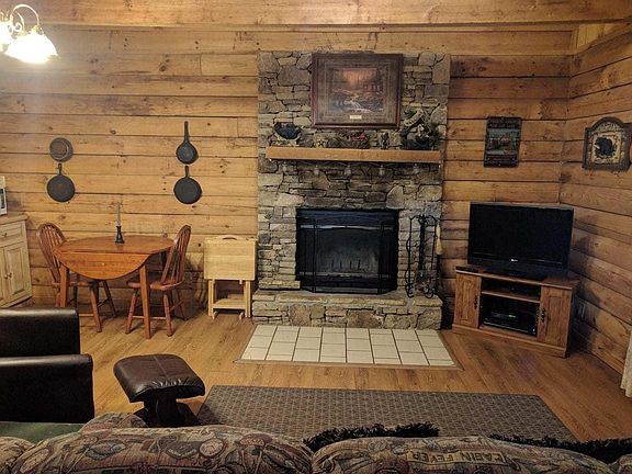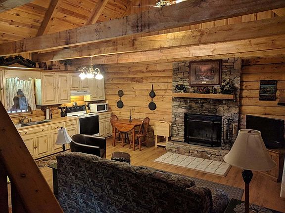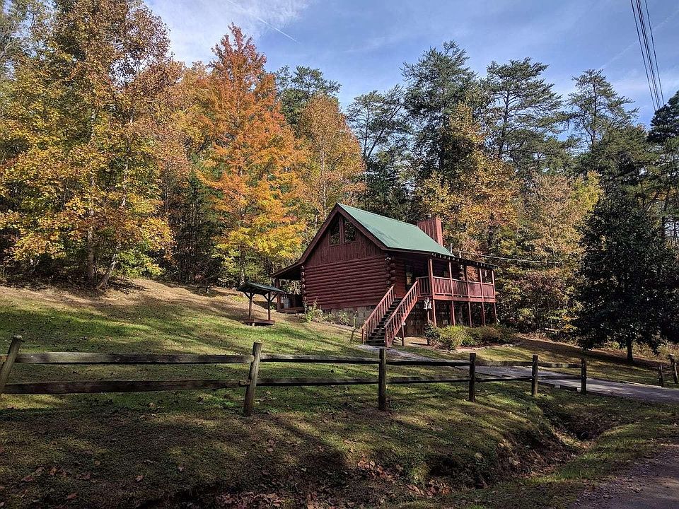 This adorable cabin does very well as an overnight rental. Nestled in the woods of Bluff Mountain and just minutes from the Parkway and all attractions. It has a large, grassy yard, level parking and lots of character with rustic charm and exposed beams. Upon entering you will notice a beautiful stack stone wood burning fireplace. The bedroom (with king bed) is on the main level with a bathroom and stack laundry. The back deck opens to your private yard, with grill, sitting area, and space for pets and children to play. The back deck also has a private area tucked in the corner for the hot tub. The upstairs loft has a pool table and small sitting area that looks down over the open beams into the living & kitchen area. The layout of this cabin feels roomy and comfortable.