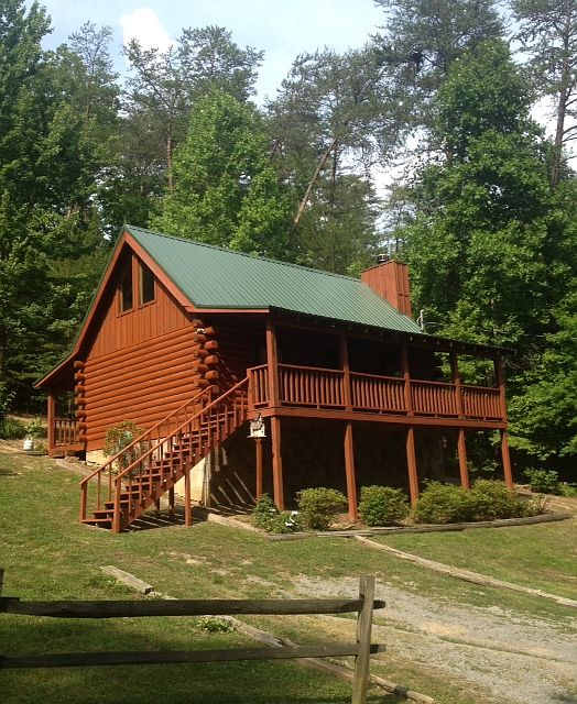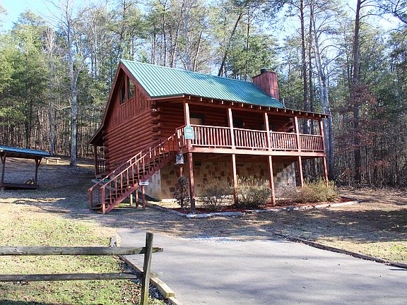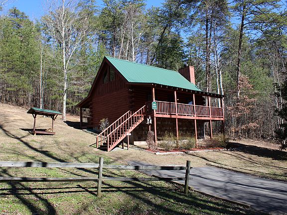 This adorable cabin does very well as an overnight rental. Nestled in the woods of Bluff Mountain and just minutes from the Parkway and all attractions. It has a large, grassy yard, level parking and lots of character with rustic charm and exposed beams. Upon entering you will notice a beautiful stack stone wood burning fireplace. The bedroom (with king bed) is on the main level with a bathroom and stack laundry. The back deck opens to your private yard, with grill, sitting area, and space for pets and children to play. The back deck also has a private area tucked in the corner for the hot tub. The upstairs loft has a pool table and small sitting area that looks down over the open beams into the living & kitchen area. The layout of this cabin feels roomy and comfortable.
