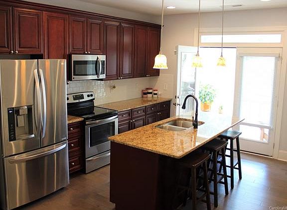 Gorgeous Epic Homes in Harrogate. Open floor plan. Numerous upgrades - granite in kitchen, baths and laundry. Recessed panel upgraded quiet close 42" drawers/ cabinets in laundry room, wide plank hardwoods, tile floors, tile on walls in secondary baths, gas burning fireplace, crown, picture and chair molding, stainless steel appliances, front and back porch (screened in). Lawncare/maintenance included. Walking distance to Shops on the Green and Fresh Market, TC Park, restaurants and Lake Norman.