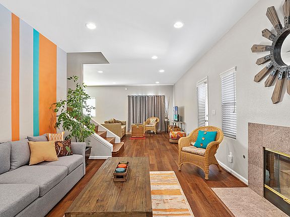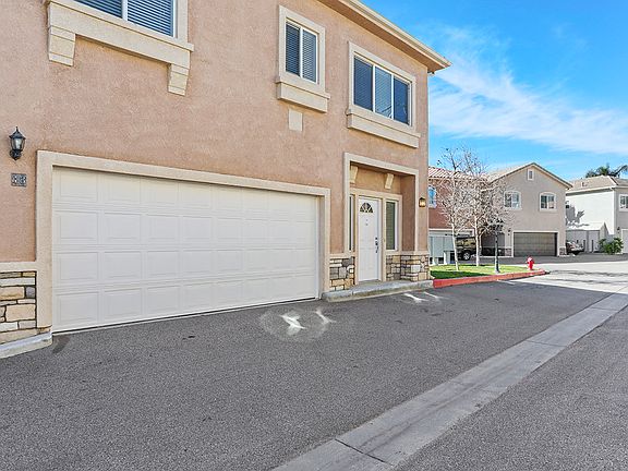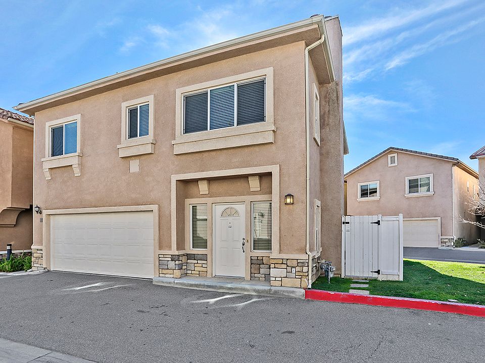 Best unit in the complex. Completely detached end unit with adjacent green space. Two private outdoor areas feature custom tile work, artificial grass, and drought-resistant landscaping with drip system. Kitchen features granite counters and opens to dining and living room. Light & bright home with new paint and new Smartcore Ultra flooring in Lexington Oak. Desirable floorplan features family room with cozy fireplace, upstairs laundry room, all bedrooms upstairs, and attached 2-car garage with direct access. Huge master suite with walk-in closet. Ensuite master bathroom features dual sinks, separate shower, jetted tub, and upgraded tile work. Features include: recessed lights, ceiling fans, pex plumbing, double pane windows throughout. Coveted community with gated access, pool, spa, tot lot, and several green spaces. Amazing location close to Orange Line, Pierce College, and Westfield Village. Refrigerator, washer & dryer included in sale.
