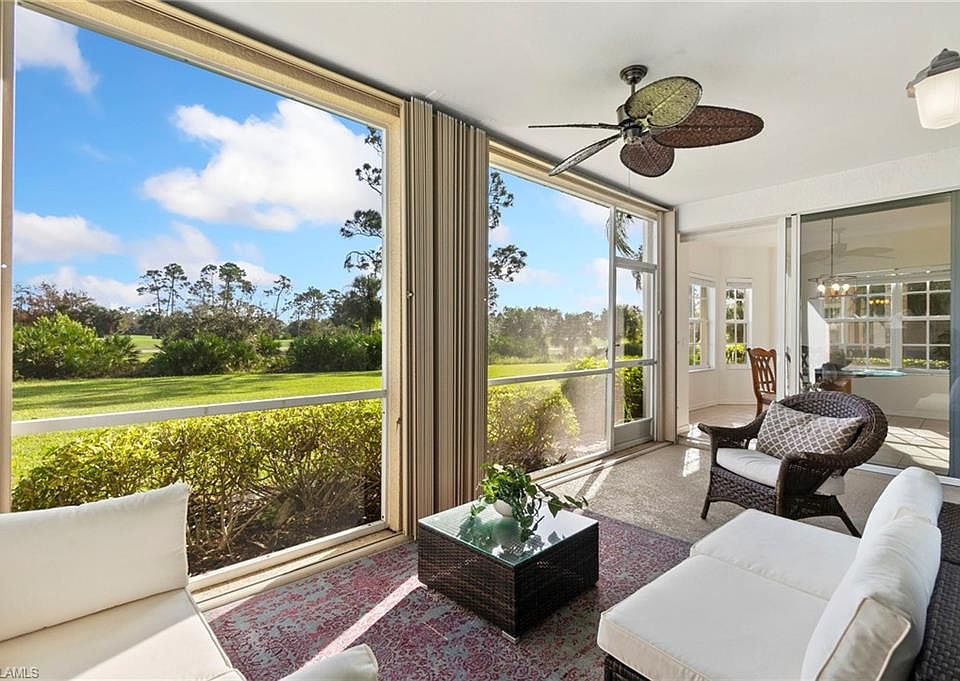 Discover the relaxed and easy lifestyle with this turnkey and ready to move-in 3 bedroom 2 bathroom with 2 car attached garage. This light and bright home has great golf course views and tastefully decorated with low maintenance, making it a perfect seasonal or year round living! New kitchen appliances, HVAC, water heater and hurricane shutters were added in 2022 and 2023. Great opportunity to live the grand resort life in the popular Grandezza Country Club offering 18 hole Championship golf, tennis courts, fitness/wellness center, heated resort pool cabana, fine/casual dining with social clubs. Located minutes from SWFL International Airport, I-75, FGCU, shopping and restaurants, makes this a great community in booming Estero, FL