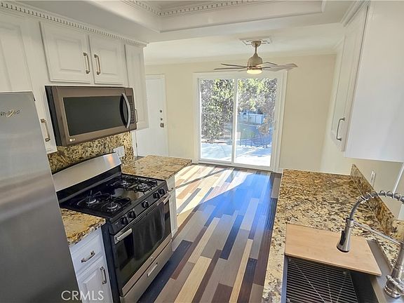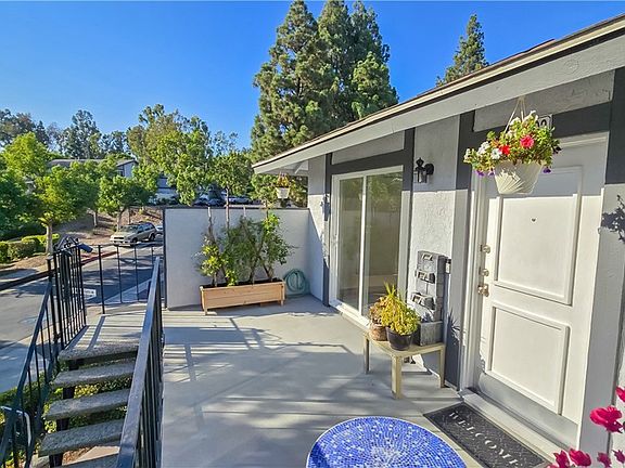 Dramatic top floor end unit location for this beautifully remodeled carriage unit in a prime area of Yorba Linda. Three Bedroom and two full baths with inside laundry all on one level with no interior steps. The location offers views, privacy and gentle breezes from the main living area. The unit has had just about everything replaced and updated - all new vinyl retrofit windows, Milgard paio sliders, New galley "step saver" kitchen, upgraded Pantry, extended granite countertops, all new appliances, hardwood flooring throughout, Alaskan Ledgstone faux fireplace w/wood mantels/seat w/LED feature, contemporary Solid wood front door w/new interior doorsdoors, updated baseboards, crown mouldings, LED recessed lighting, new bathroom vanities, toilets, hardware and floating shelves, upgraded balcony railings with security gate, Tesla EV charging station at the garage and more. The front Terrace/patio/deck space has upgraded surfacing with fountain and cedar planters - perfect to let the outside in for Barbeques, entertaining or just relaxing in a private space to recharge your day. Unit includes Refrigerator, Microwave, Washer and Dryer. HOA amenities include a Pool, Spa, Tot lot, cable TV, Trash and exerior maintenace and Insurance. FHA approved. Enjoy the lifestyle!