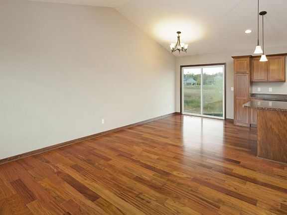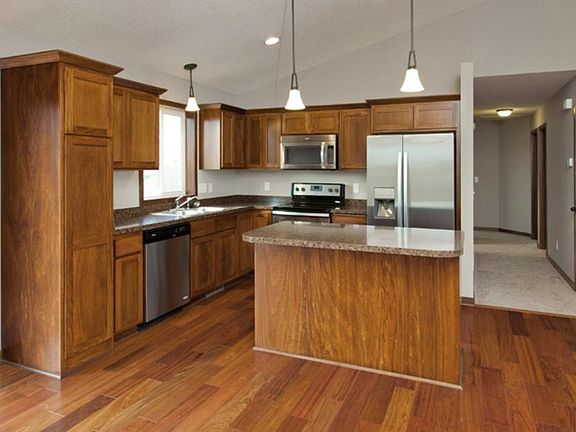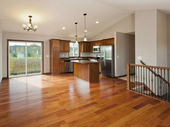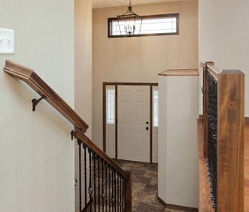 This home has a 2 story open foyer w/wood trim. Laminated wood floors in kitchen & dining room along w/recessed lights & 2 pendent lights over center island, roll out shelves, lazy susan & recycle bin. Master bedroom has 5 ft shower w/tile walls. Wired for your flat screen wall TV's in all bedrooms. Iron rails in the living room, LED stair lights which illuminate all night long. 3 large full sized windows & patio door in full walkout unfinished basement. In ground sprinkler & sodded yard.