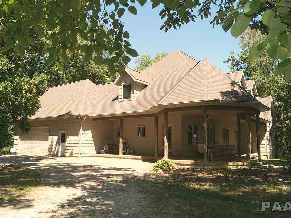 Beautiful 5 Bedroom Country Home on 5 Acres! The Home is Sided in Shake Shingle Vinyl, has Gutter Helmet and sits back off the road nestled in Hickory, Walnut, and Oak Trees. You enter the home from the large porch with gazebo corner into the all purpose Kitchen complete with Master-craft Cabinets from Hampton's and a 36" Wolf Gas Stove with Convection Oven you will be sure to love. The open Living and Dining Room with 9' Ceilings offer ample space for entertaining or just quiet times at Home. There are double doors in the basement for easy access. The property is fenced on 3 Sides.