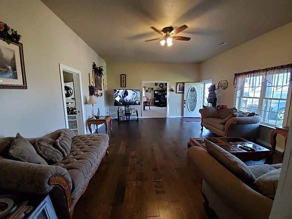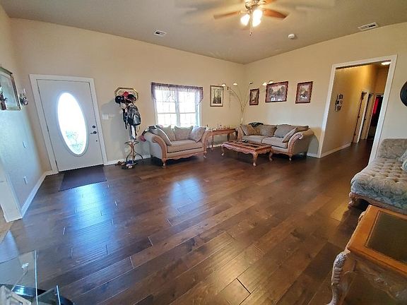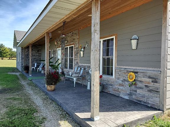 Gorgeous custom built home just minutes from Chanute with just under 3 acres of land. Quality workmanship, quality materials! Cement siding and lots of stone trim. Excellent floor plan. Ten foot ceilings throughout. Hardwood floors in living room, hall and bedrooms. Tile in baths. Super huge kitchen and dining area. Spacious laundry room. The welcoming front porch details include stamped concrete floor and wood ceiling. Master suite has french doors to private covered patio area with stamped concrete floor. Master bath is fit for a queen. Double vanities, tiled whirlpool tub, tiled walk in shower, beautiful tile floors and L-shaped walk in closet! And for the King, a 36 x 48 foot well equipped shop!