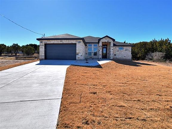 New construction in Lago Vista~Low annual HOA includes several parks, lake access, and more. Open floor plan with monochromatic color scheme makes the home feel modern and bright. The kitchen offers lots of custom built wood cabinets, a large granite island, and a double pantry with microwave built-in. Appliance allowance for buyer to choose their preferred color. Separate laundry room, office/study, covered back patio with T&G cedar off the living room and master. All for <$300k!!