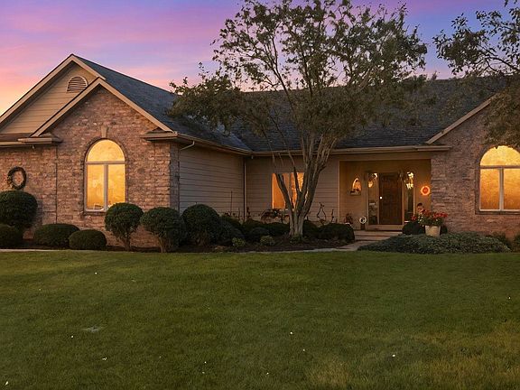**OPEN HOUSE SUNDAY 11/16 1:00-4:00** Exquisite Ranch Home on 2.14 Acres with Pond – 3 Bedrooms, 3.5 Baths, 4,276 Sq. Ft. of Finished Living Space! Discover the perfect blend of comfort, elegance, and natural beauty in this immaculate ranch-style residence situated on 2.14 picturesque acres featuring a beautiful pond, deck, and pier. With 4,276 sq. ft. of finished living area, this home offers spacious living and thoughtful design throughout. The main level showcases a bright and inviting great room with abundant natural lighting, a formal dining room, and a kitchen with an eat-in area ideal for casual dining. The split-bedroom floor plan ensures privacy, with the primary suite offering dual vanities, a jacuzzi tub, and a separate shower. The kitchen features newer appliances, ample cabinetry, and generous counter space. The fully finished basement provides exceptional additional living space, including a large family gathering area, kitchenette with dining area, a full bath, and two versatile bonus rooms with closets—perfect for guest quarters, a home office, or recreation rooms. For added convenience there is a split three car garage with a stairway from the garage to the basement. Outdoor living is equally impressive, featuring a spacious deck overlooking the pond, a pad and pier for relaxing, and a fire pit area ideal for entertaining. The property is beautifully landscaped, offering tranquility in every season.