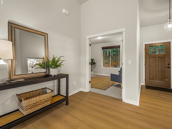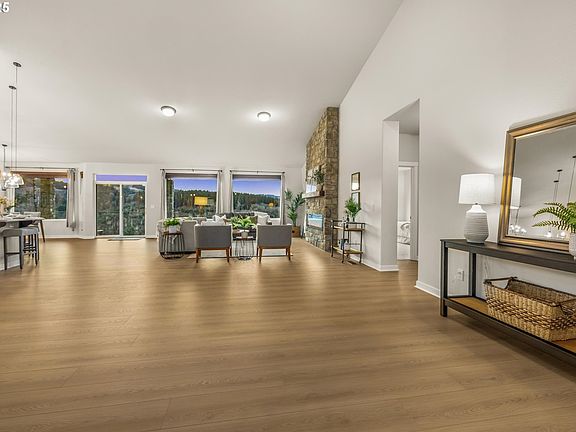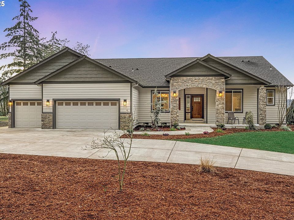 Stunning and pristine, this 1-level modern ranch-style home is in a private setting on 2 lovely acres with breath-taking valley and territorial views! From the lovely new stone entry to the new stone fireplace and new wide plank flooring, the numerous modern updates just completed make this home feel new! Enjoy the serene views from the spacious great room/living room with vaulted ceilings that is open to the large kitchen with new quartz counters, a pantry, stainless steel appliances, a work-station sink, brushed brass kitchen hardware, new lighting, a breakfast bar, and a dining area, in addition to a large dining room, too! Enjoy the serene views from the primary bedroom with french doors into the elegant tiled spa-like bathroom, double vanities, a modern spa tub and a new lovely walk-in tiled shower, and a large walk-in closet, too. The three additional bedrooms feature new luxurious carpets, additional updated bathrooms with quartz counters and more, and large laundry room with stainless steel washer/dryer. Oversize 3-stall garage, RV parking with 30 amp service and clean-out, heat pump/cooling, room for a large shop. New well pump, new lighting, new fixtures, new paint inside and out, and much more. Two large covered porches/patios, large open areas and a firepit area, too; great for entertaining and BBQ's while enjoying the spectacular peaceful views! A must see acreage/Chehalem Mountain retreat!