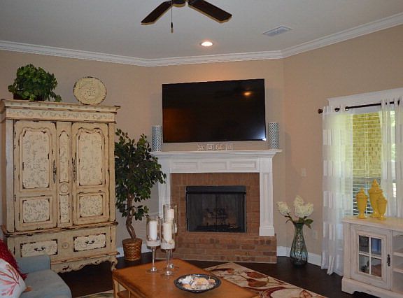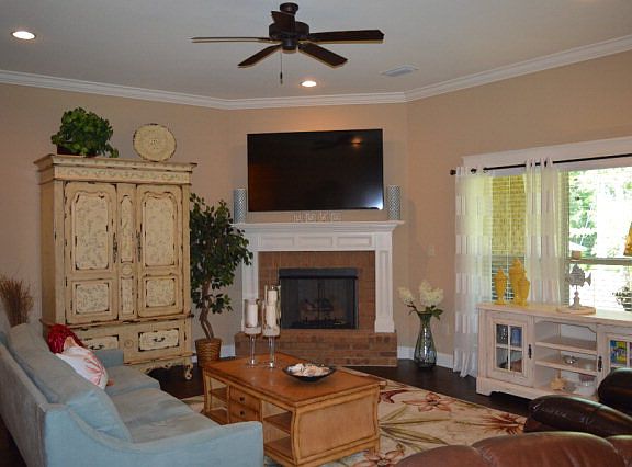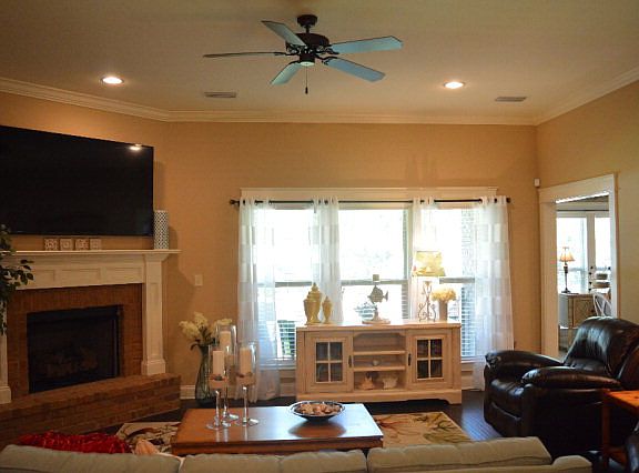 Mint condition craftsman style home built by Truland Homes. This open floor plan has the best of both worlds with a traditional foyer featuring an 8 ft. Mahogany front door with stained plantation shutters, & coat closet. Hardwood plank floors continue from the foyer into the living room. The living room is a comfortable gathering spot with a gas log fireplace, brick hearth & wood mantle, triple windows take center stage allowing plenty of natural light. The kitchen and breakfast room are directly off of the living room continuing a seamless layout for entertaining. The kitchen island is a standout with granite countertops & plenty of cabinets for storage, 18 inch ceramic tile flooring, Whirlpool stainless steel refrigerator, gas stove, & microwave, large pantry with wood shelving. Large Master with tray ceiling, double granite vanity, soaking tub & separate shower in bath. Wood blinds on all windows, covered porch, wood fence, sprinkler system & more! Must see, don't miss this one!