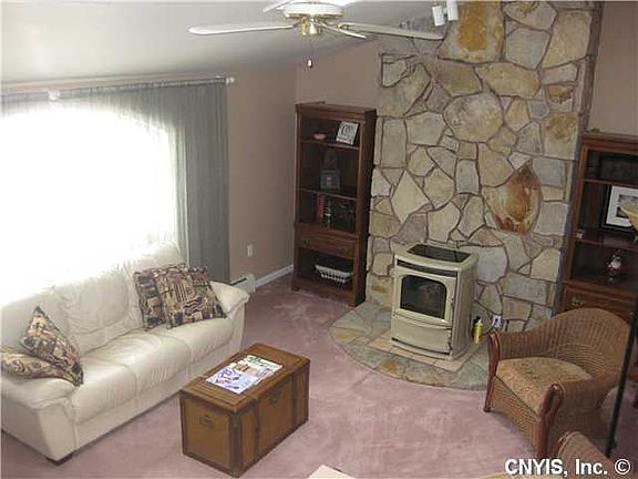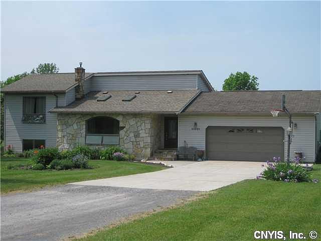 This 3 bedroom 1.5 bath home sits on 3.3 acres of beautifully landscaped property. The stone work on the front of the house and around the pool area will blow you away! There are 2 large living rooms, one of which has a pellet stove and cathedral ceilings. The kitchen has plenty of cupboard space and opens up to the large dinning room. The full bath is brand new with a large garden tub and a beautiful marble stand up shower. The new boiler allows for inexpensive utilities bills & the large two car attached garage helps keep you out of the cold ! So call for a private showing today !!!