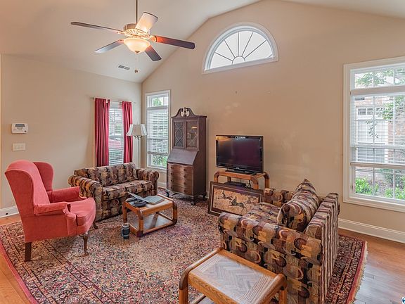 HIGHLY DESIRABLE END UNIT townhome offers easy living all on one level. From the vaulted ceiling in the light-filled Great Room to the shining hardwood floors, this 2 bed 2 bath townhome will welcome you right in. An elegant Formal Dining Room with lovely crown molding adjoins the kitchen with its breakfast bar to make entertaining friends and family a joy. Stainless appliances, Corian counters, beautiful cabinetry and hardwood floor complete the kitchen. A large bright window overlooks the enclosed backyard from an isolated Owner's suite perfect for relaxing at days end. Adjoining bath suite has vaulted ceiling, jetted tub & separate shower. Full bath off the hall serves the second bedroom.