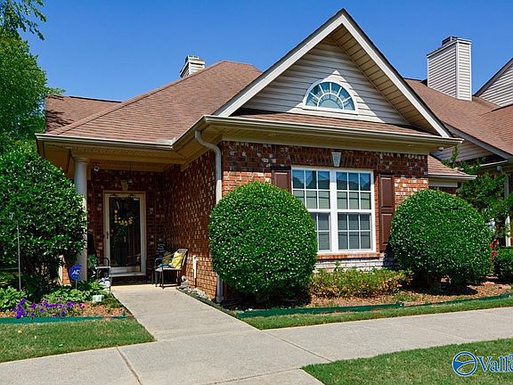 Beautifully maintained Townhome. This one level low maintenance Townhome is centrally located near Mid City, Bridge Street, Redstone Arsenal, and Research Park. Step right in onto the marble foyer floors and into the main living area with soaring vaulted ceilings. Large primary suite, spacious kitchen with marble floors, 2nd bedroom and full bath complete this comfortable home. Beautiful hardwood floors and crown molding in main living areas. Property includes a detached storage building located directly off the covered patio in the privacy fenced back yard. This building could be your work or hobby shed and is equipped with a large storm shelter. Common area with gorgeous creek!