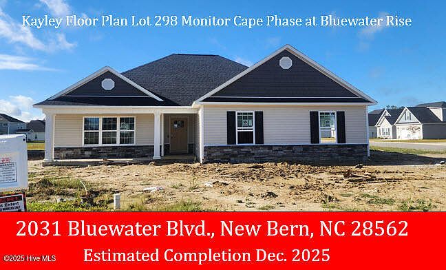 The ''Kayley'' floor plan in Monitor Cape Phase of Bluewater Rise. Construction starts in July. Contract now & make design center selections! $10,000 buyers closing cost assistance with use of preferred closing attorney. This impressive split floor plan features a large family room w/ gas log fireplace, Vaulted ceilings, granite counter tops, & a spacious master bedroom suite w/ private bath & walk-in closet. Quick commute to Cherry Point MCAS and Downtown New Bern.