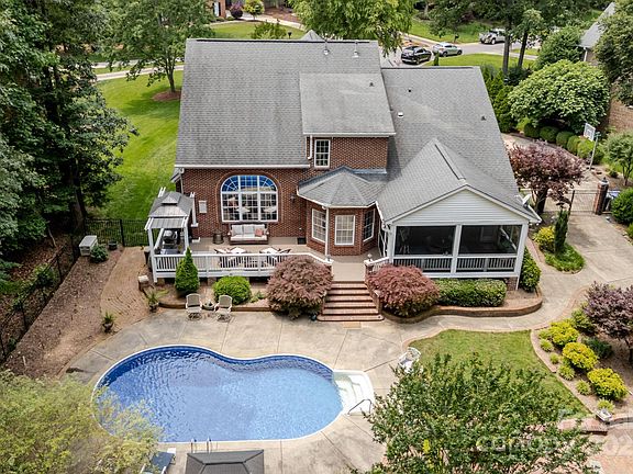 A rare opportunity in Weddington Brook! Here's your chance to get a .92 lot backing HOA woods, on a cul-de-sac in the Weddington School District! Even better, a backyard oasis w/pool, screened porch, deck w/grilling area, a she-shed/playhouse & grassy area for sports. Inside a 2-story foyer opens to a home office & formal dining. There's a vaulted great room w/fireplace & built-ins, which connects to the kitchen & breakfast area. The drop zone leads to laundry & garage (drywalled & freshly painted). Spacious 1st floor primary suite, w/access to the screened porch, plus a luxurious bath. It has a dual vanity, water closet, zero entry shower & jetted tub. There are 2 customized primary closets, one expansive. Upstairs, you'll find the option for 4 more bedrooms, including the perfect bonus/family space, & a bath with dual vanity. 2-car attached garage w/EV charger, plus a brick detached garage w/2 more spots. Lush landscaping with lighting, and gated back drive. Welcome home!