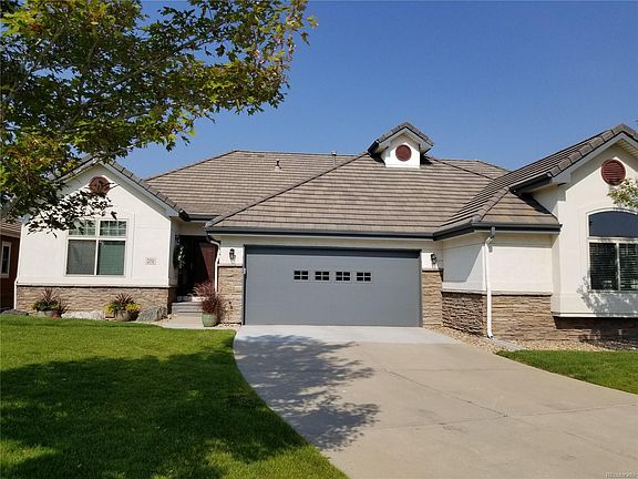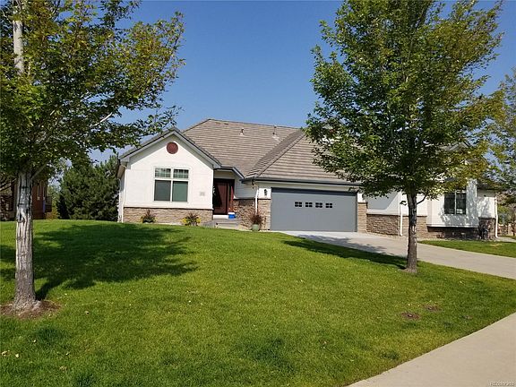 Stunning 3,000 Square Foot maintenance free patio home at Heritage at Vista Ridge with phenomenal mountain views in a golf course community. The main floor includes the master with another bedroom with a ¾ bath. The main floor also has hardwood floors, gas fireplace, and an attached extended private deck with an internally wired stereo speaker. The nicely finished garden level has 2 large bedrooms with walk-in closets, 3/4 bathroom, and large living area with built-in surround sound to enjoy with the family. Vista Ridge has a community center with an exercise suite, plus a large zero entry pool. There is also a second pool available. There is easy access to Northwest Parkway with the airport 30 minutes away, Denver and Boulder are 25 minutes. Enjoy, from the privacy of your deck, Erie's 3th of July Fireworks along with the spring Balloon Launch which are held on the Colorado National Golf Course. Buyer to verify all advertised listing info.