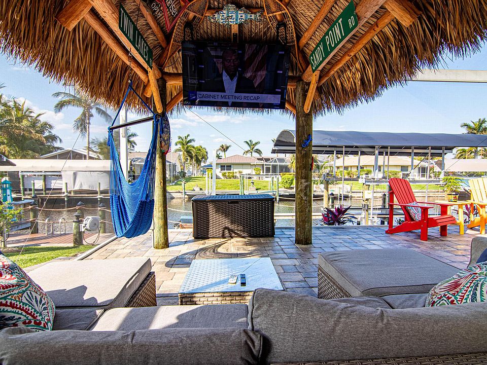 Two weeks February 1 of February 14 are available entire month of April is also available! Spring break weeks are only $1500 plus departure cleaning fee in April! Welcome to your private tropical retreat in the BEAUTIFUL and TRANQUIL Cornwallis neighborhood of Cape Coral with DIRECT RIVER AND GULF ACCESS! This spacious 4-bedroom, 2-bathroom home is designed for relaxation and adventure, featuring an AMAZING HEATED POOL and a thatched tiki hut for outdoor lounging with a 55" tv. Featuring coral decor, The Tiki Tide is the perfect blend of comfort, style, and island vibes! Enjoy the unique experience of your own tropical oasis! 4 bedrooms - 1 king, 2 queen pullouts, 1 queen bed, 1 bunk bed with full size mattresses, 1 pullout twin trundle bed 2 bathrooms Fully SCREENED-IN and paved rear patio with a HEATED POOL and custom lighting for after dusk! Outdoor thatched tiki hut and sun lounging chairs for an escape to paradise! 16,000 LB boat lift that can be rented during your stay! Contact AFVR Property Manager for more details Renter is responsible for electric utilities. Water and wifi are provided.