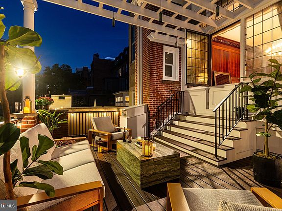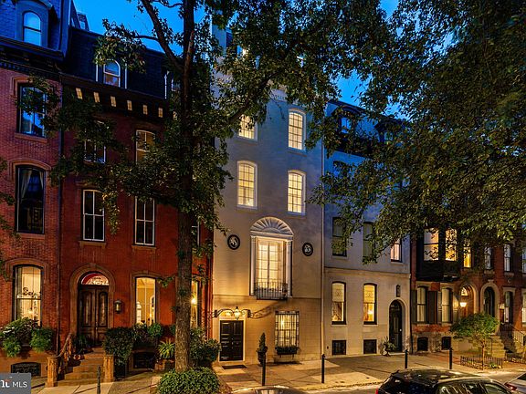 On Delancey’s most storied block, this 6,000+ sq ft, c.1860 mansion—artfully reimagined in 1924 by the celebrated firm Tilden, Register & Pepper—delivers museum-quality craftsmanship and comprehensive modernization. Unlike its brick-clad neighbors, it is one of only two limestone façades on the block, and at six full stories rising approximately 70 feet, it stands as the tallest residence on the street—a landmark of scale, material, and preservation. With 6 beds, 5 full baths, 2 powder rooms, 9 fireplaces, roof deck, a 2-car garage, and an elevator serving all 6 levels from the garden level to the fifth floor, 2031 Delancey stands apart as a meticulously maintained work of architecture and a triumph of engineering—all on a 23 x 93 ft lot. Enter through the original 1860 front door—still fitted with its hand-forged English handle—into a Belgian-marble-paved vestibule. An arched passage frames the sweeping main staircase, which marries the original hand-carved Brazilian mahogany and velvet rail with bespoke Samuel Yellin wrought-iron artistry. Beyond, double doors open to the light-washed living room, wrapped in refined millwork—deep crowns, tall baseboards, and crisp casings. The custom chef’s kitchen features new rift- and quarter-sawn white-oak floor, Brazilian quartzite countertops, a Sub-Zero/Wolf/Miele suite and professionally vented hood. The dining room flows back to the living room, and a service door just beyond the cozy breakfast nook leads to the attached 2-car garage. Ascend to the piano nobile’s Belgian marble landing. To the front, find a formal salon with soaring 12.5’ ceilings crowned by the original 1860 ceiling frieze and a 1909 French chandelier. At rear, the finely crafted library is paneled in American Chestnut, with mahogany floors, an artisan-restored bar, and a hearth of King of Prussia marble. Seamless, historically accurate millwork conceals a powder room and elevator access. French doors lead to the roof deck, with gas and water service, Trex decking, iron railings and views of the skyline. On the third floor, the front primary suite is cocooned and quiet, with 12’ ceilings and new wall-to-wall Berber carpet to soften both acoustics and underfoot feel. Custom built-ins—including a media cabinet pre-wired for television—keep the room tailored and calm. Both suites on this floor feature new walk-in closets and rebuilt ensuite baths in stone and porcelain tile and frameless glass for period-faithful proportion with contemporary performance. New custom shutters and new thermal-insulating, remote-controlled blackout blinds provide privacy on this level and in the two fourth-floor bedroom suites. The rear fourth floor bedroom retains the original pine flooring; the baths echo the home’s holistic renovation. A full-size laundry adds convenience. The elevator opens directly onto the fifth floor, a luminous retreat crowned by a skylight that pours natural light across the original, time-softened pine floors. This level flexes beautifully, with spaces for two bedrooms or a private office and a den, lounge or fitness area. A second kitchen and luxurious full bath make the space self-sufficient for long stays or work-from-home days. The elevator extends down to the garden level—a finished flex space featuring an iron-gated wine cellar, and a dedicated laundry area. What truly distinguishes 2031 Delancey is the rigor of its renewal. In recent years, the owners executed a comprehensive systems restoration, including 3-zone HVAC with new furnace and condensers, new heat pump and smart thermostats, Lutron lighting and Sonos throughout, Double-glazed windows, updated electrical panels, and dual 75-gallon water heaters with booster pumps enhance comfort. At the same time, the home’s legacy materials have been preserved and quietly fortified—each element bringing the home’s 19th-century pedigree forward for your 21st-century lifestyle.