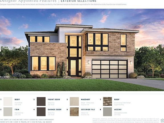 This brand-new contemporary home offers 3,234 square feet, 5 bedrooms, 5.5 baths, a first-floor office, and a second-floor loft. The striking two-story foyer leads to an expansive great room just beyond. The first floor offers a bedroom suite complete with private bath. A large loft space on the second floor creates a space that is perfect for the way you live. The great room brings the outdoors inside with the 90-degree corner multi-slide door opening to a spacious covered outdoor living space with a linear fireplace. Other highlights of this home include a solar panel system, a solar battery, and enhanced recessed lighting and low-voltage packages. Disclaimer: Photos are images only and should not be relied upon to confirm applicable features.