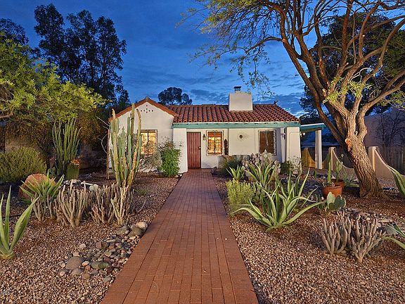 For more information on this property, contact the Listing Agent, Denice Osbourne at (520) 918-5983 or DeniceO@LongRealty.com. Charming 1939 Bungalow within 1 mile to the U of A. Clay tile roof, hard wood floors, out door living space all add to the desert southwest ambiance that this property exudes. Large living room open to dining room & kitchen. Upgraded bathroom w/tiled fixtures,cabinets. freshly painted. AZ room used as office/den. Backyard has covered patio w/fireplace,brick pavers & concrete patio is a wonderful spot for entertaining. Separate guest qtrs, 3/4 bathroom, high ceilings. Walled and private, fruit trees, perma-culture system beautiful desert plantings & fruit trees. 1 car carport.