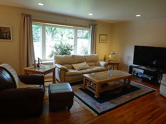 Home Sweet Home! This 4 bedroom - 2.5 bath split entry home sits at the end of a cul-de-sac on a wooded half acre! Property features a private lovely landscaped yard, wood deck and stone patio area that's ideal to barbeque with friends. Has vibrant hardwood floors, bay window, 2 fireplaces, an open concept living room, dining room and kitchen - feels airy and is convenient for entertaining along with large finished family room on lower level. Lots of closet space plus an extra-large two car garage.