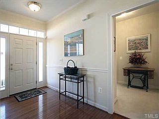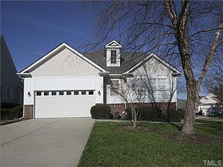 3-bedroom detached home in Cary's Heritage Pines, a 55+ community. First floor master bedroom. Second bedroom (also on 1st floor) would make a great office. Third bedroom, full bath and bonus room upstairs. Huge living room with vaulted ceiling. Kitchen has granite counter tops and island workspace. Breakfast room. Formal dining room. Screened porch. Two-car garage.
